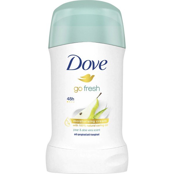Dove Stick Women Go Fresh Pear & Aloe Vera 40 ml oferă o protecție antiperspirantă delicată, special creată pentru femei. Formula sa îmbogățită cu aloe vera hidratează pielea sensibilă a axilelor, prevenind uscarea și iritațiile. Parfumul proaspăt și fructat de pară conferă o senzație de prospețime și confort pe tot parcursul zilei. Bucură-te de protecție sigură și o senzație revigorantă cu deodorantul stick Dove Go Fresh.